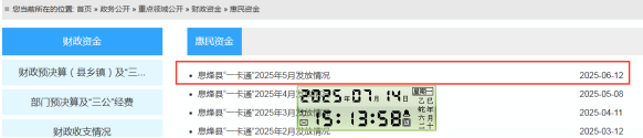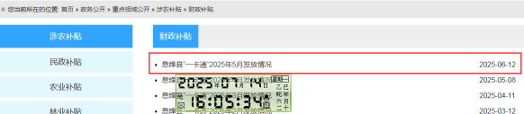 该栏目超过1个月未及时更新信息,未及时更新息烽县“一卡通”2025年6月发放情况,建议县财政局及时收集相关信息对栏目进行更新维护。
