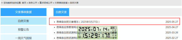 8.首页»政务公开»重点领域公开»灾害事故救援»自然灾害(责任单位:县自然资源局、县应急管理局)