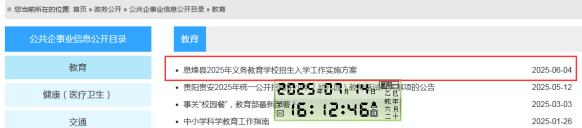 15.首首页»政务公开»公共企事业信息公开目录»教育(责任单位:县教育局)