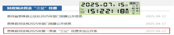 该栏目未及时更新息烽县司法局2025年第二季度“三公”经费支出公开表,建议县司法局及时收集相关信息对该栏目进行更新维护。