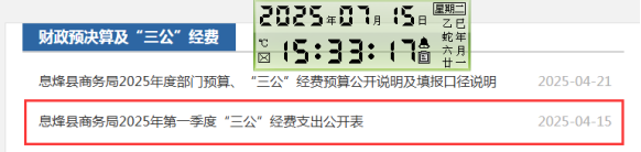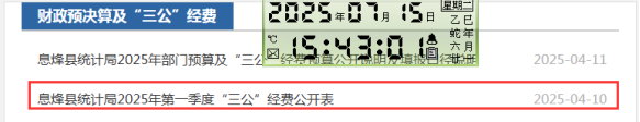 该栏目未及时更新息烽县统计局2025年第二季度“三公”经费公开表,建议县统计局及时收集相关信息对该栏目进行更新维护。