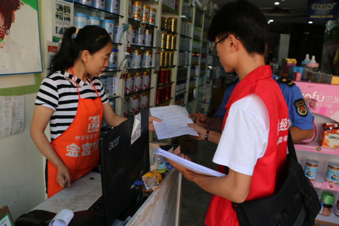 在石硐镇上场口,志愿服务队队员方敏正顶着炎炎烈日,挨家挨户引导群众签订门前三包责任书,同行的两位小伙伴则忙着登记住户基本信息,发放《石硐镇创文倡议书》。作为石硐镇街道人员流动性最大的区域,该路段集中了石硐镇大部分商店和餐馆,一直以来环境卫生脏乱差现象普遍,特别是其中几家商店占道经营、产品包装材料乱堆乱放等问题比较突出,相关部门虽几经整治,但却容易反弹。令人惊讶的是,在面对这些还未出校门的学生志愿者时,商户们却出奇地配合,积极主动开展垃圾清扫和野广告清理。对此,一经营户给出的答案是因为愧疚和感动。“这些读书娃放弃暑期舒适的生活,大热天的跑到这里来劝导我们不乱扔垃圾、不随地吐痰...,他们的工作没有报酬,只是单纯的想做一点对社会有意义的事,让我们很是感动。”