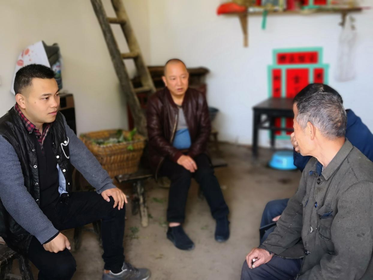 许滔(右二)与驻村队友到贫困户王孝平家了解情况