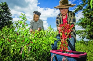 开阳县禾丰乡王车村村民在采收辣椒。(资料图片)
