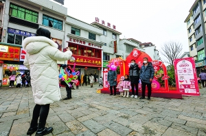 1月22日,市民在提升改造后的花溪十字街游玩。贵阳日报融媒体记者 石照昌 摄