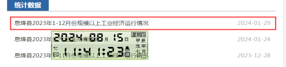 该栏目未及时更新息烽县2024年1—7月份规模以上工业经济运行情况。建议县统计局按月收集规模以上工业经济运行情况对栏目进行更新维护。