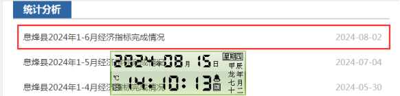该栏目未及时更新息烽县2024年1-7月经济指标完成情况,建议县统计局及时收集相关信息对该栏目进行更新维护。