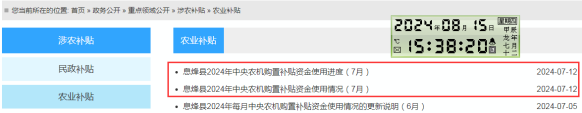 该栏目超过1个月未及时更新信息,未及时更新息烽县2024年中央农机购置补贴资金使用进度(8月)、息烽县2024年中央农机购置补贴资金使用情况(8月),建议县农业农村局及时收集相关信息对该栏目进行更新维护。