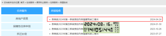 该栏目超过3个月未及时更新信息,未及时更新息烽县2024年第二季度贵阳市房屋建筑竣工情况,建议县住房和城乡建设局及时相关信息对该栏目进行更新维护。