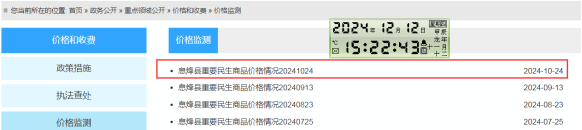2.首页»政务公开»重点领域公开»价格和收费»价格监测(责任单位:县市场监管局)