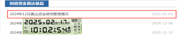 该栏目超过1个月未及时更新信息,未及时更新2025年1月直达资金使用管理情况,建议县财政局及时收集相关信息对该栏目进行更新维护。