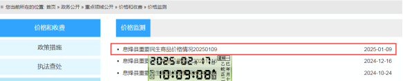 4.首页»政务公开»重点领域公开»价格和收费»价格监测(责任单位:县市场监管局)