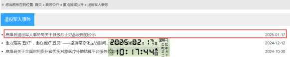 6.首页»政务公开»重点领域公开»退役军人事务(责任单位:县退役军人事务局)