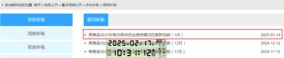 该栏目超过1个月未及时对栏目进行更新维护,未及时更新息烽县2025年每月移民资金使用情况的更新说明(2月),建议县农业农村局及时收集相关信息对该栏目进行更新维护。