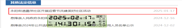 22.首页»政务公开»机构设置»乡镇街道办事处»永阳街道»政府信息公开»法定主动公开内容»其他法定信息(责任单位:永阳街道)