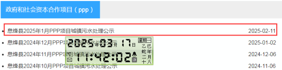 该栏目超过1个月未及时更新维护,未及时更新息烽县2025年2月PPP项目城镇污水处理公示,建议县水务局及时收集相信息对该栏目进行更新维护。