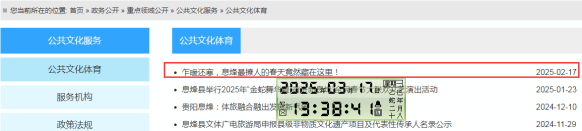 18.首页»政务公开»重点领域公开»公共文化服务»公共文化体育(责任单位:县文体广电旅游局)