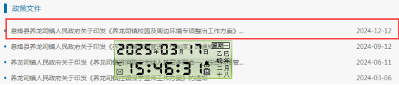 政策文件类栏目超过3个月未及时更新信息,建议养龙司镇及时收集相关信息对该栏目进行更新维护。