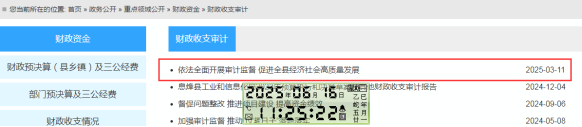 2.首页»政务公开»重点领域公开»财政资金»财政收支审计(责任单位:县财政局、县审计局)