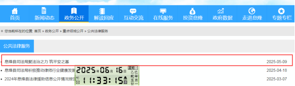 该栏目未按照更新频率进行更新维护,超过1个月未及时对栏目进行更新,建议县司法局及时收集相关信息对该栏目进行更新维护。