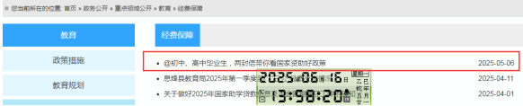 15.首页»政务公开»重点领域公开»涉农补贴»教育补贴(责任单位:县教育局)