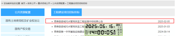 4.首页»政务公开»重点领域公开»重大建设项目»招标投标(责任单位:县直各部门)