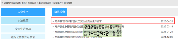 16.首页»政务公开»重点领域公开»安全生产»执法检查(责任单位:县应急管理局)