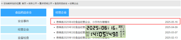 该栏目超过1个月未及时更新信息,未及时更新息烽县2025年5月食品经营企业、小作坊办理情况,建议县市场监管局及时收集相关信息对栏目进行更新维护。