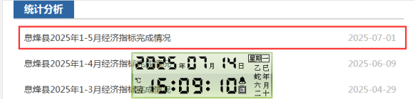 该栏目未及时更新息烽县2025年1—6月经济指标完成情况。建议县统计局按月收集规模以上经济指标完成情况对栏目进行更新维护。