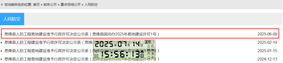 该栏目超过1个月未及时对栏目进行更新维护,建议县自然资源局、县应急管理局及时收集相关信息对该栏目进行更新维护。