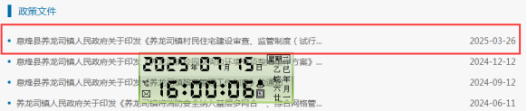 政策文件累栏目超过3个月未及时更新信息,建议养龙司镇及时收集相关信息对该栏目进行更新维护。