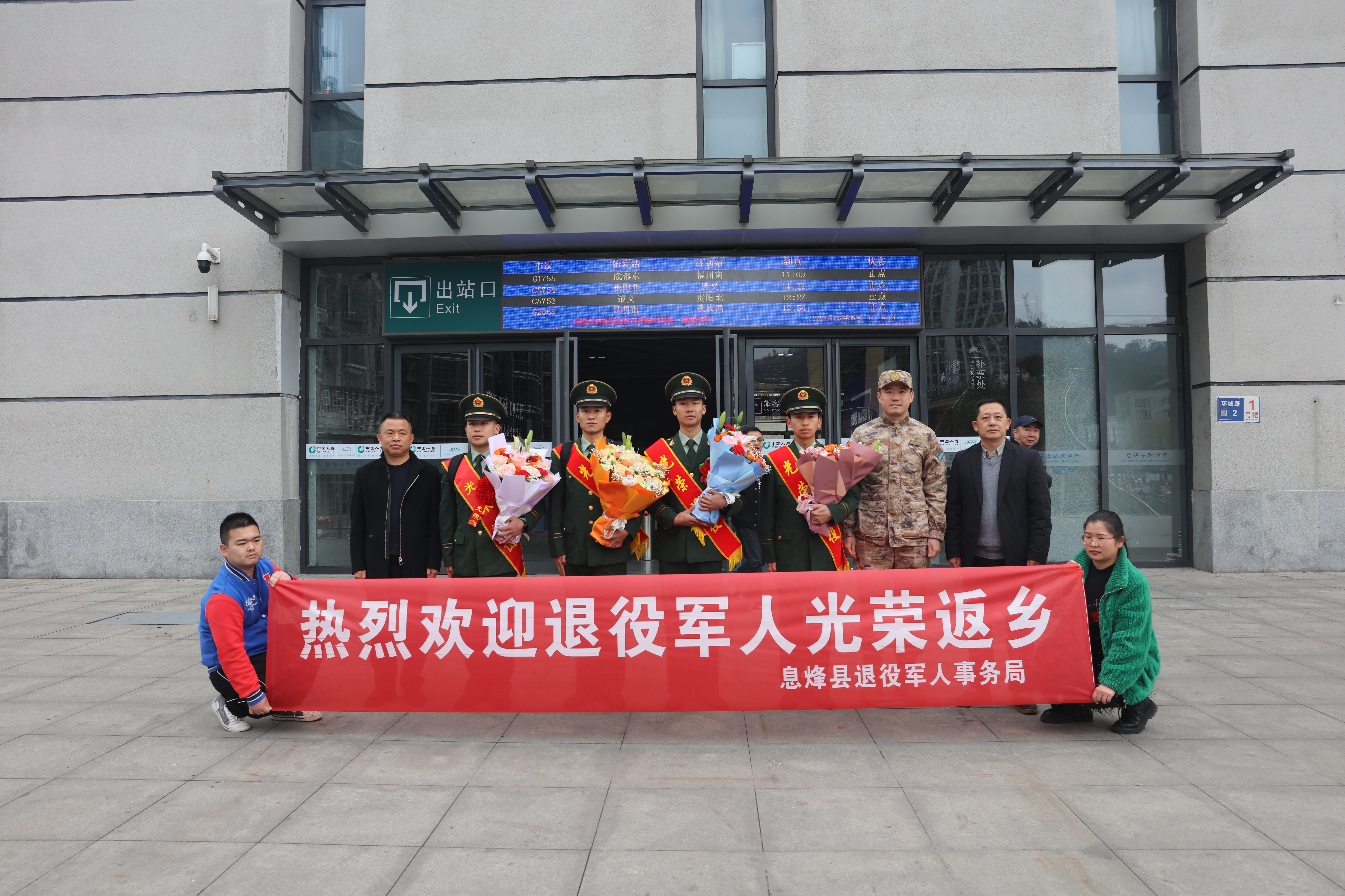 3月5日上午,由息烽县退役军人事务局局长徐波带队,县人武部、县退役军人事务局服务中心工作人员组成的迎接队伍早早就在息烽高铁站出站口等候,11点左右,从四川武警总队某支队退役的杨明峰一行4人带着行李阔步走出站台。