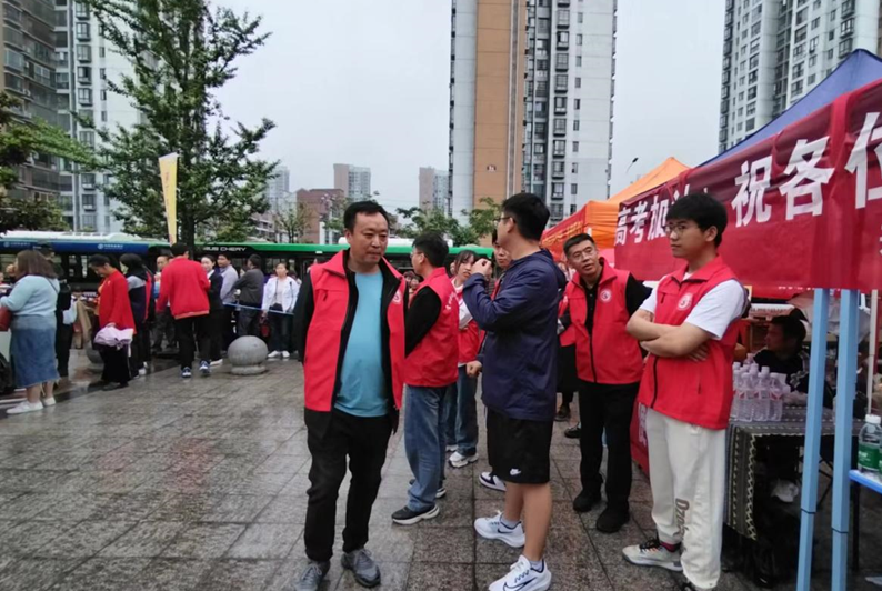 6月7日,志愿者早早分赴各考点,以饱满的热情和细致的服务,为考生和家长提供全方位的帮助。在息烽一中考点外,永阳街道退役军人志愿服务队设立便民服务点,为考生和家长准备休息场所,免费发放矿泉水等爱心物资,并和等候的家长交流沟通,帮助他们排解心理压力、缓解紧张情绪。同时在考点附近重要交通路段,协助有关部门疏导车流、劝阻鸣笛,维护考点周边交通秩序,引导考生有序进出考场,营造安全有序的考试环境。