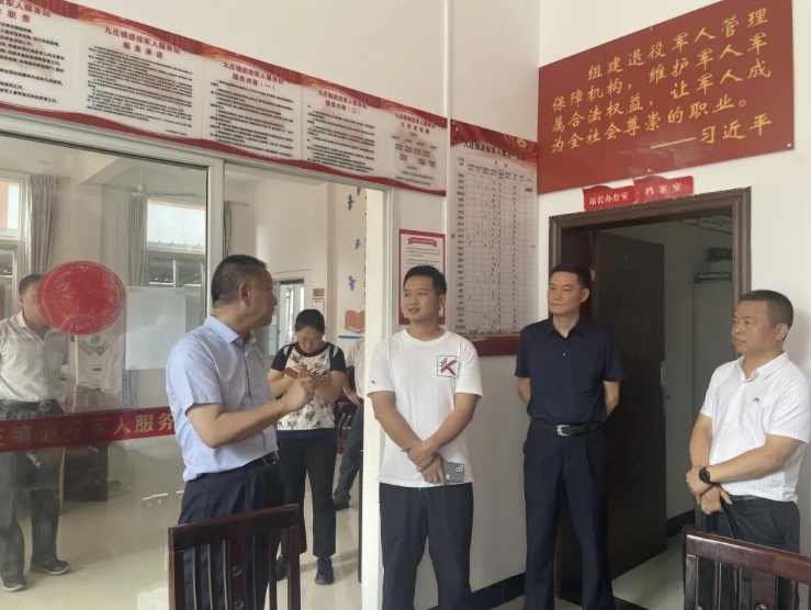 在九庄镇人民政府,督导检查组听取了退役军人服务站日常工作情况,对当地退役军人培训就业、优抚对象政策待遇落实、困难退役军人统计帮扶、退役军人志愿服务队作用发挥等工作情况开展督导检查,在充分肯定当前工作成效的同时,对下步工作提出要求。督导检查组强调,退役军人是党和国家的重要财富,各级党委、政府和退役军人事务部门,要深入学习贯彻习近平总书记关于退役军人工作的重要论述,严格落实党的二十届三中全会精神,进一步增强服务意识,建立健全退役军人常态化联系服务机制,摸清底数、建好台账、掌握情况,结合当地情况不断探索、提升服务退役军人方式方法和能力水平,以更多务实举措为退役军人办实事解难题,不断推动退役军人工作高质量发展。
