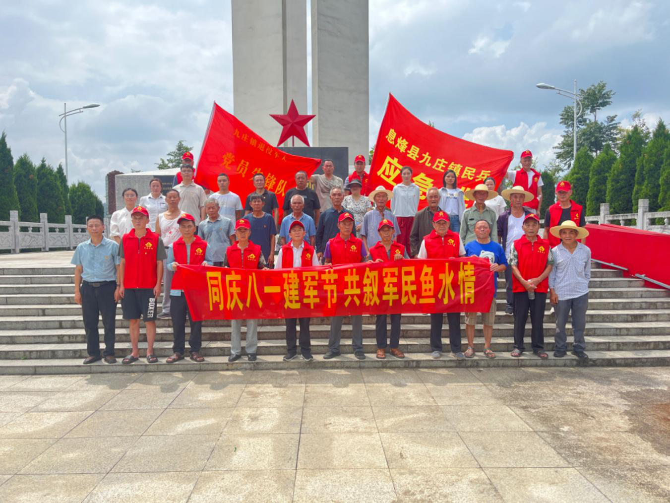 8月1日,息烽县九庄镇在九庄红军烈士陵园纪念碑开展了烈士祭扫活动。同时开展了退役军人座谈会,围绕优惠政策和疾病预防等进行了讨论交流。