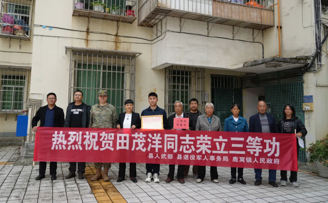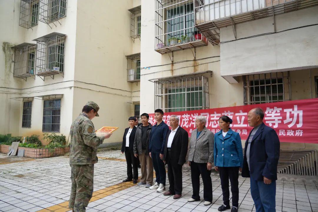 随后,送喜报小组深入息烽县永阳街道,为荣立三等功的田茂洋送去喜报。
