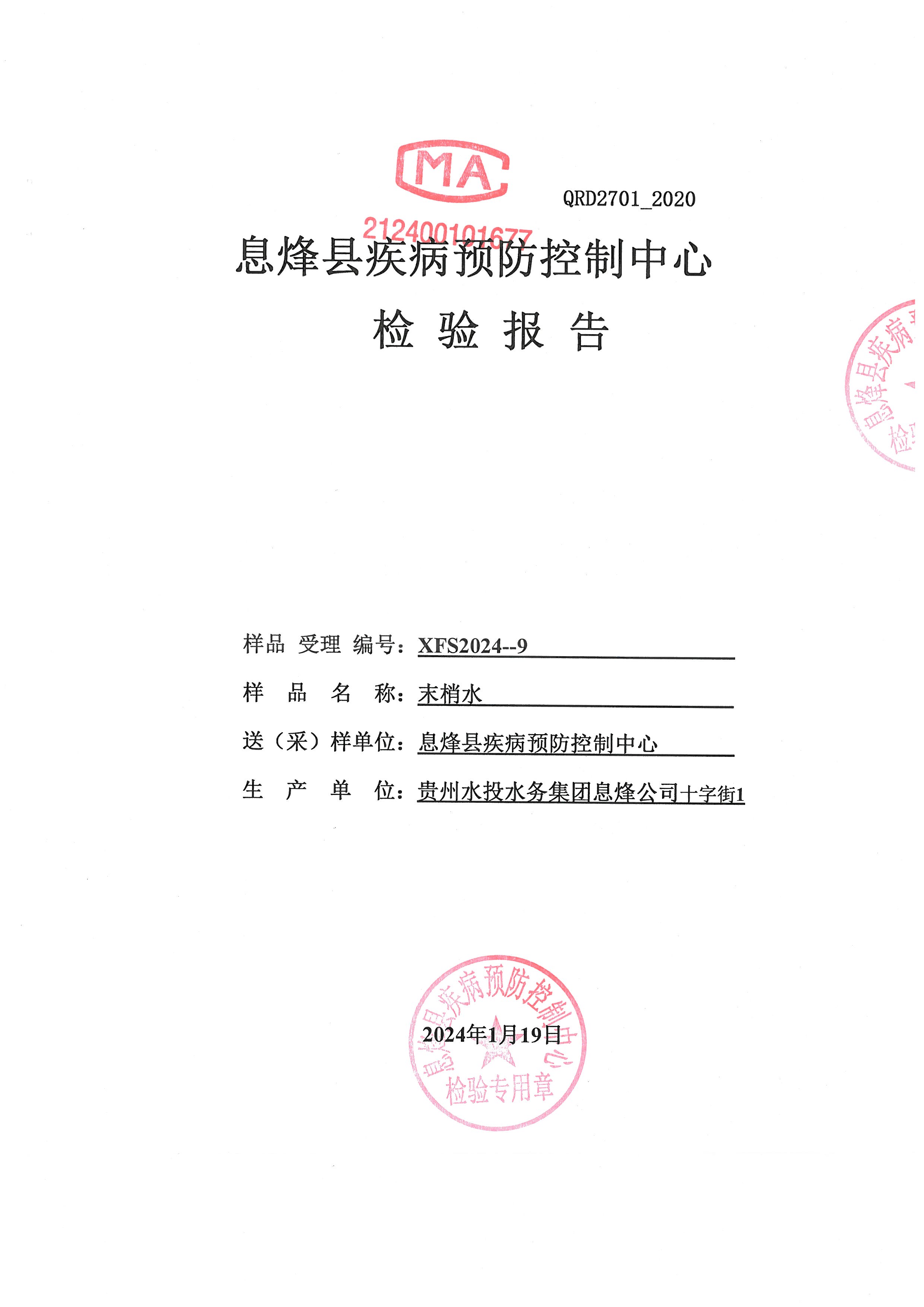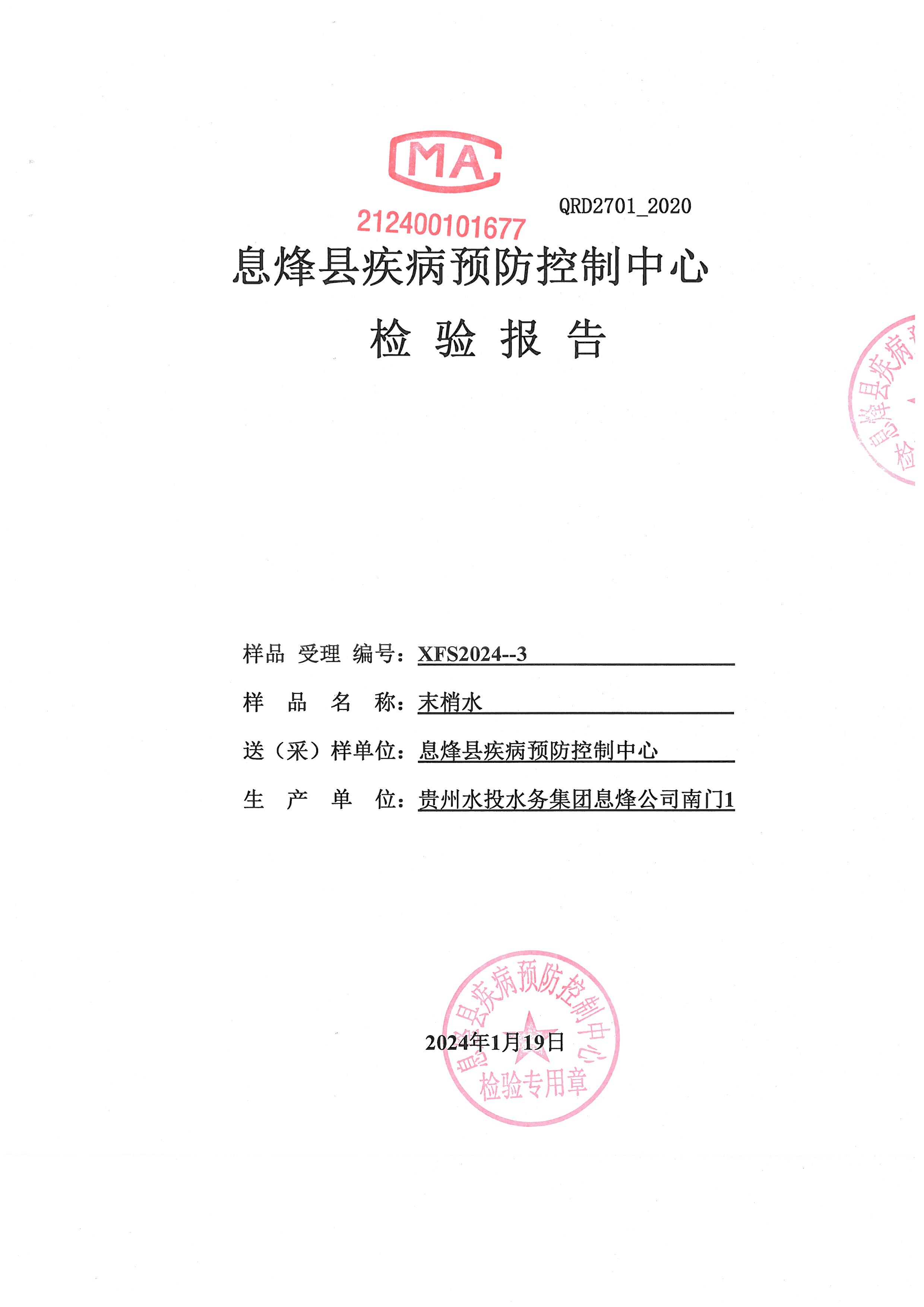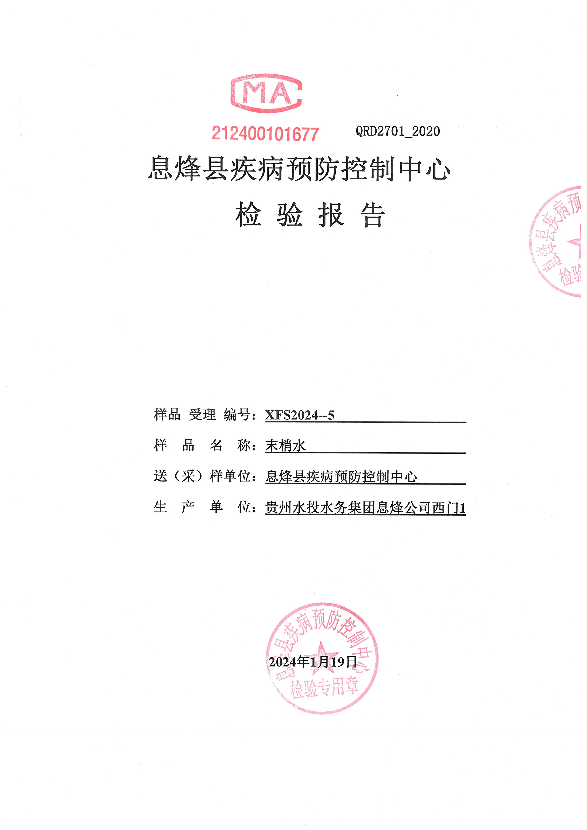 贵州水投水务集团息烽有限公司2024年1月水质检测报告