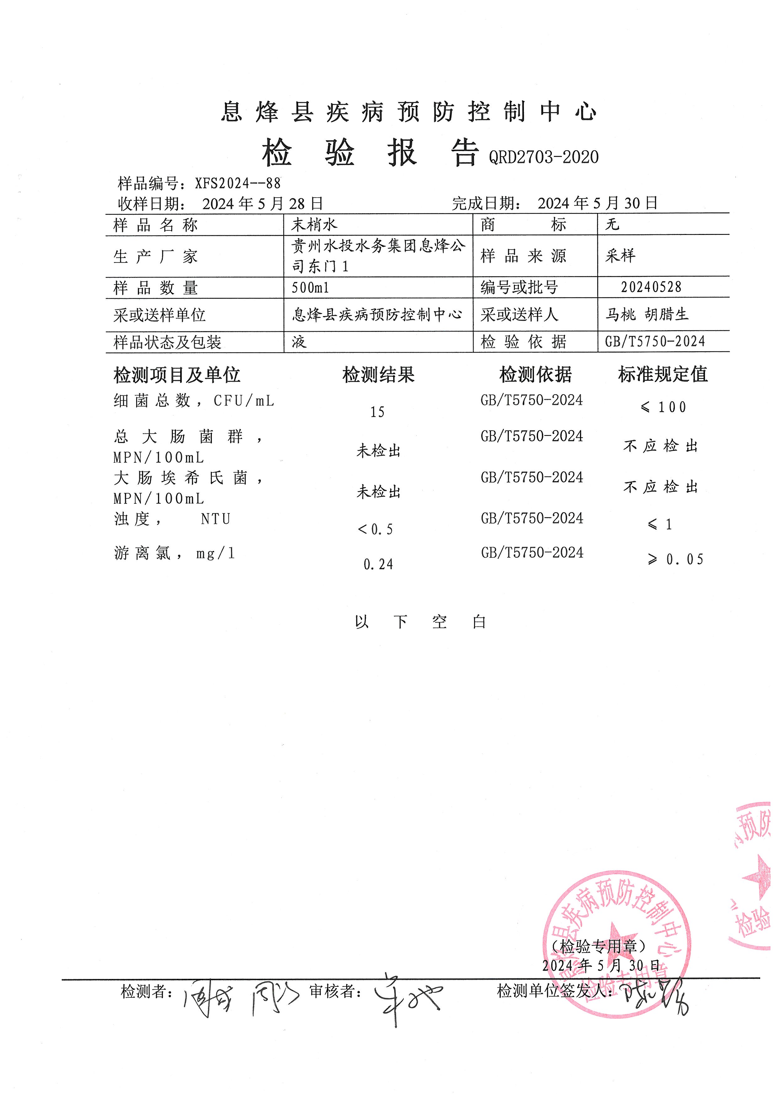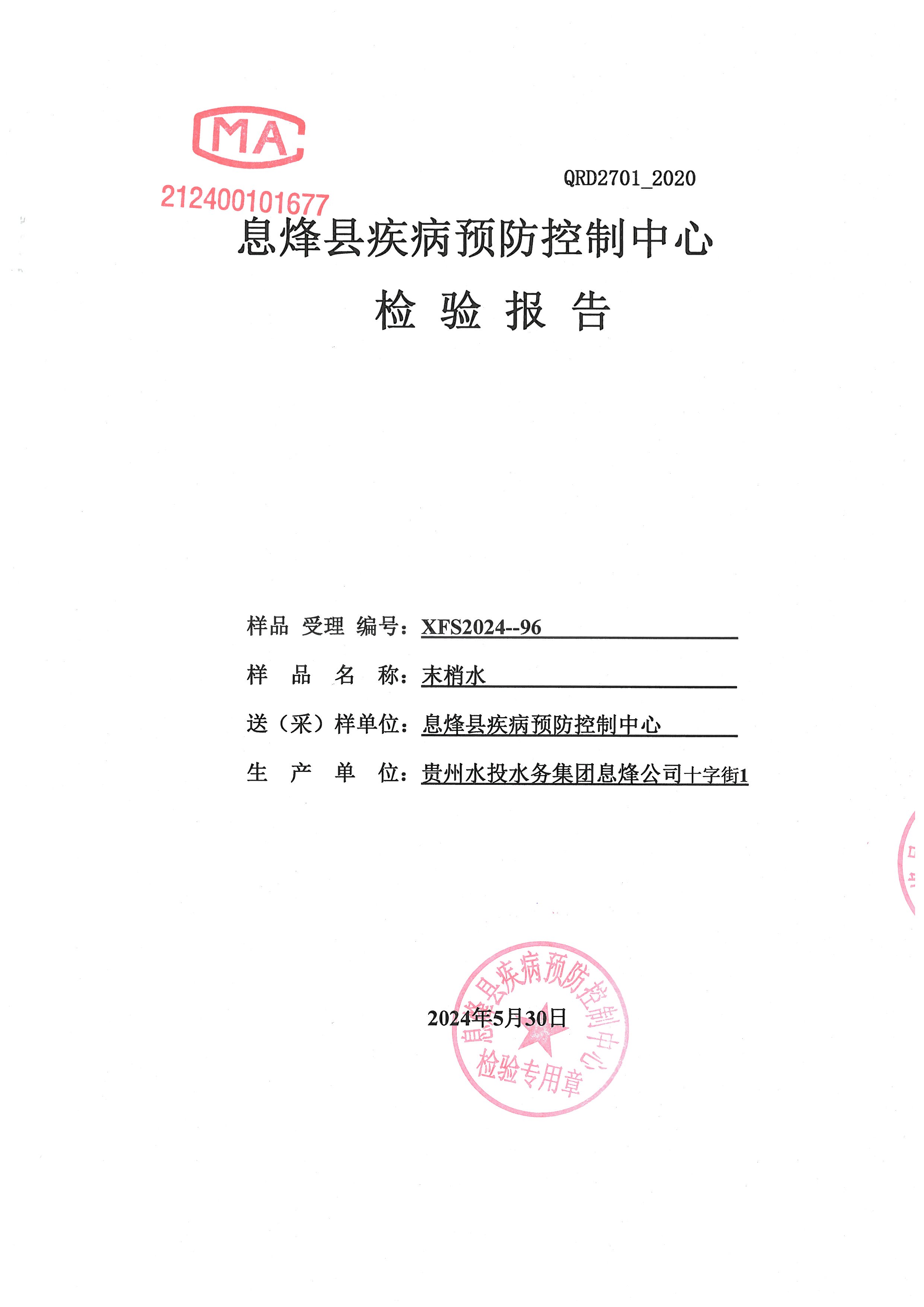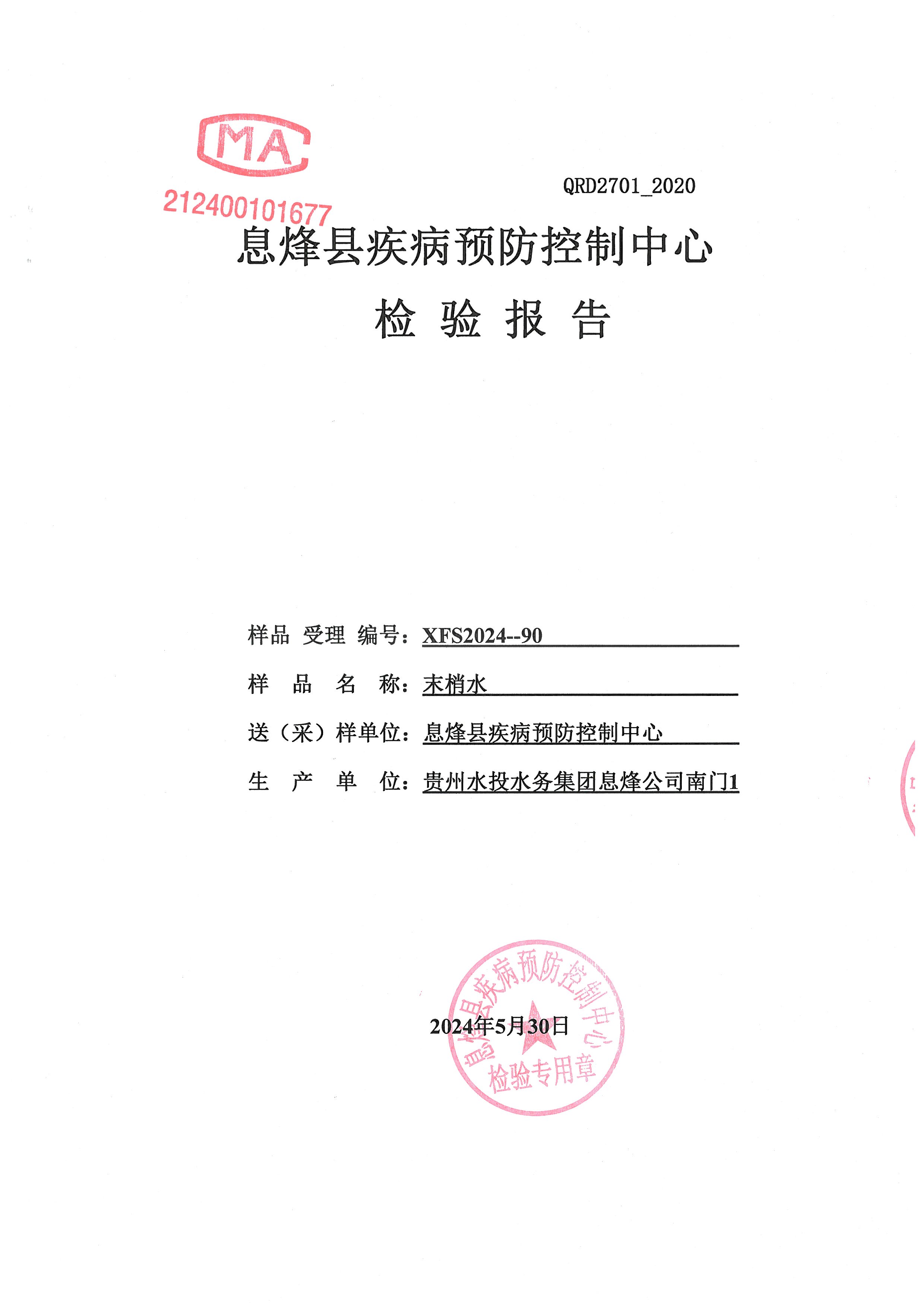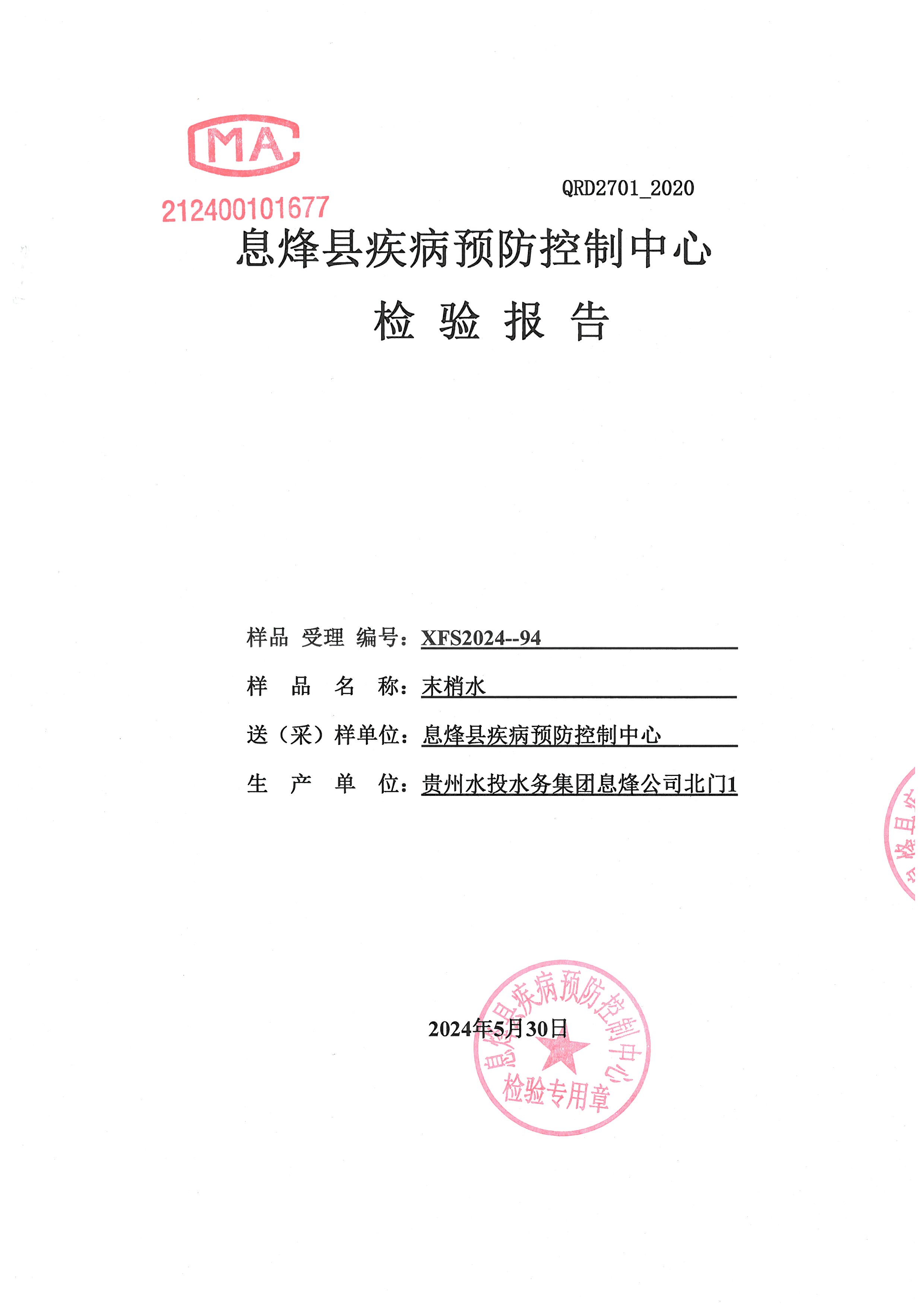 贵州水投水务集团息烽有限公司2024年5月水质检测报告