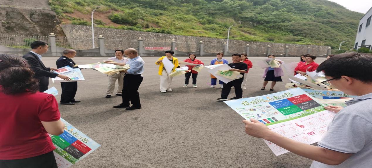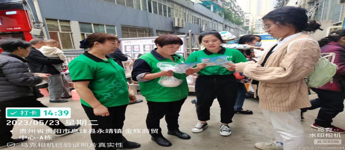 图为 2023年5月25日,息烽县总工会党组成员、副主席陈昌松同志带领志愿者到贵州味美食品工业有限公司开展生活垃圾分类知识进企业宣传活动,发放垃圾分类宣传资料,讲解垃圾四分类方法,有效提升餐饮企业对垃圾分类重要意义的认识,提高了企业职工对生活垃圾分类的知晓率、参与率、准确率。