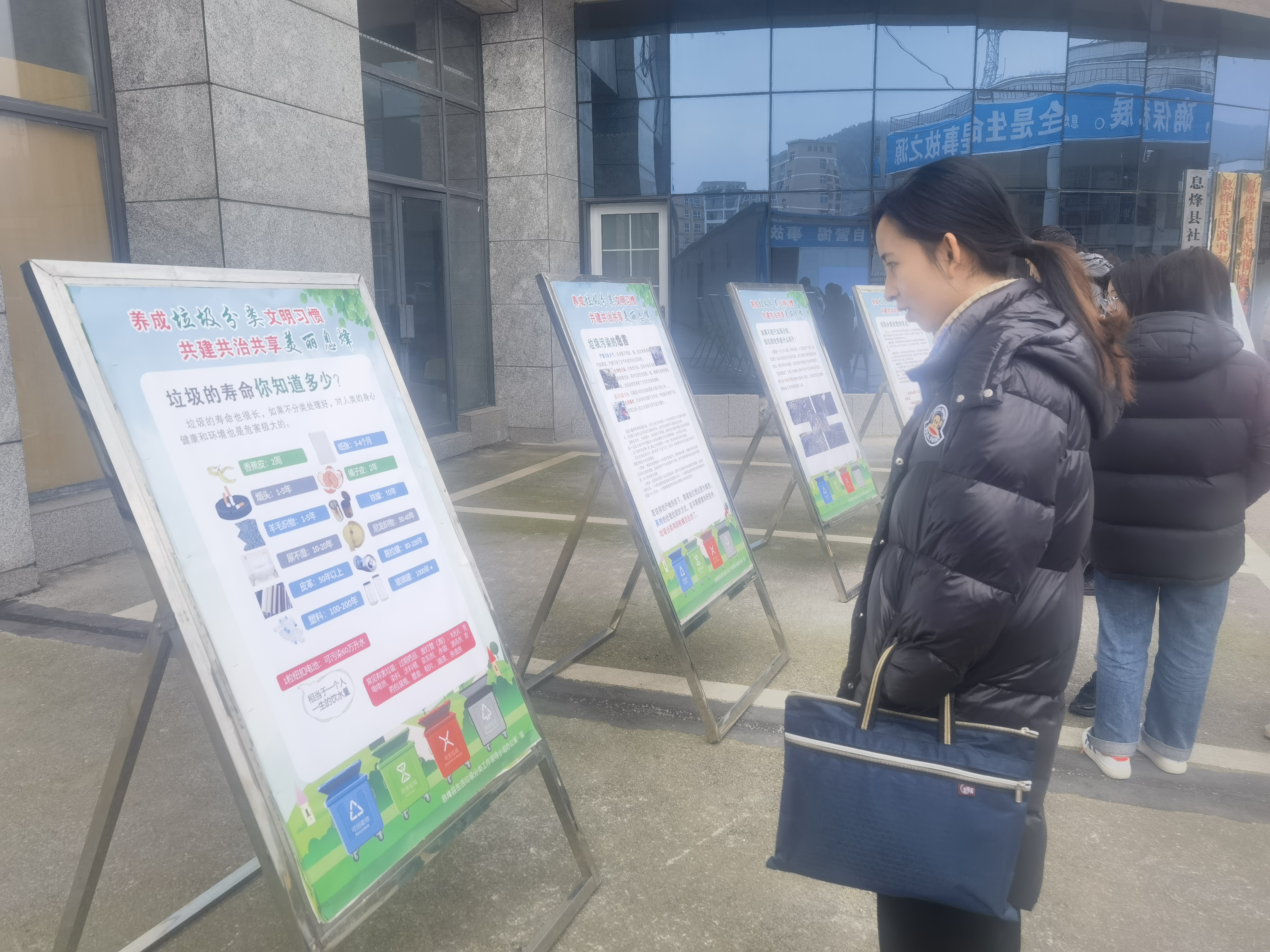 (观看垃圾分类宣传展板)