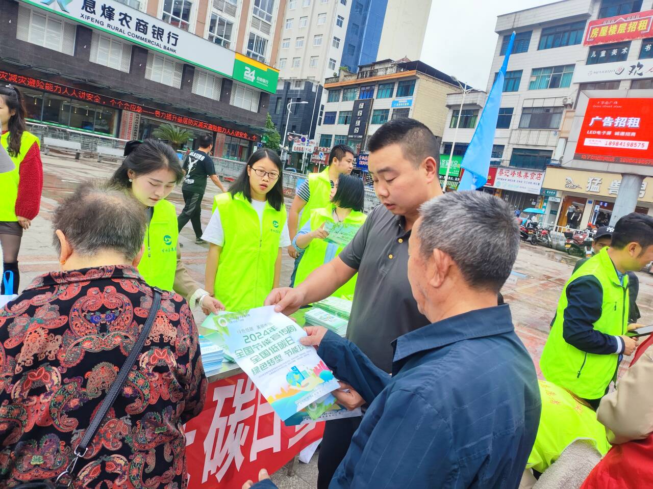 图为 2024年5月11日,在十字街广场开展全国节能宣传周、全国低碳日集中宣传活动