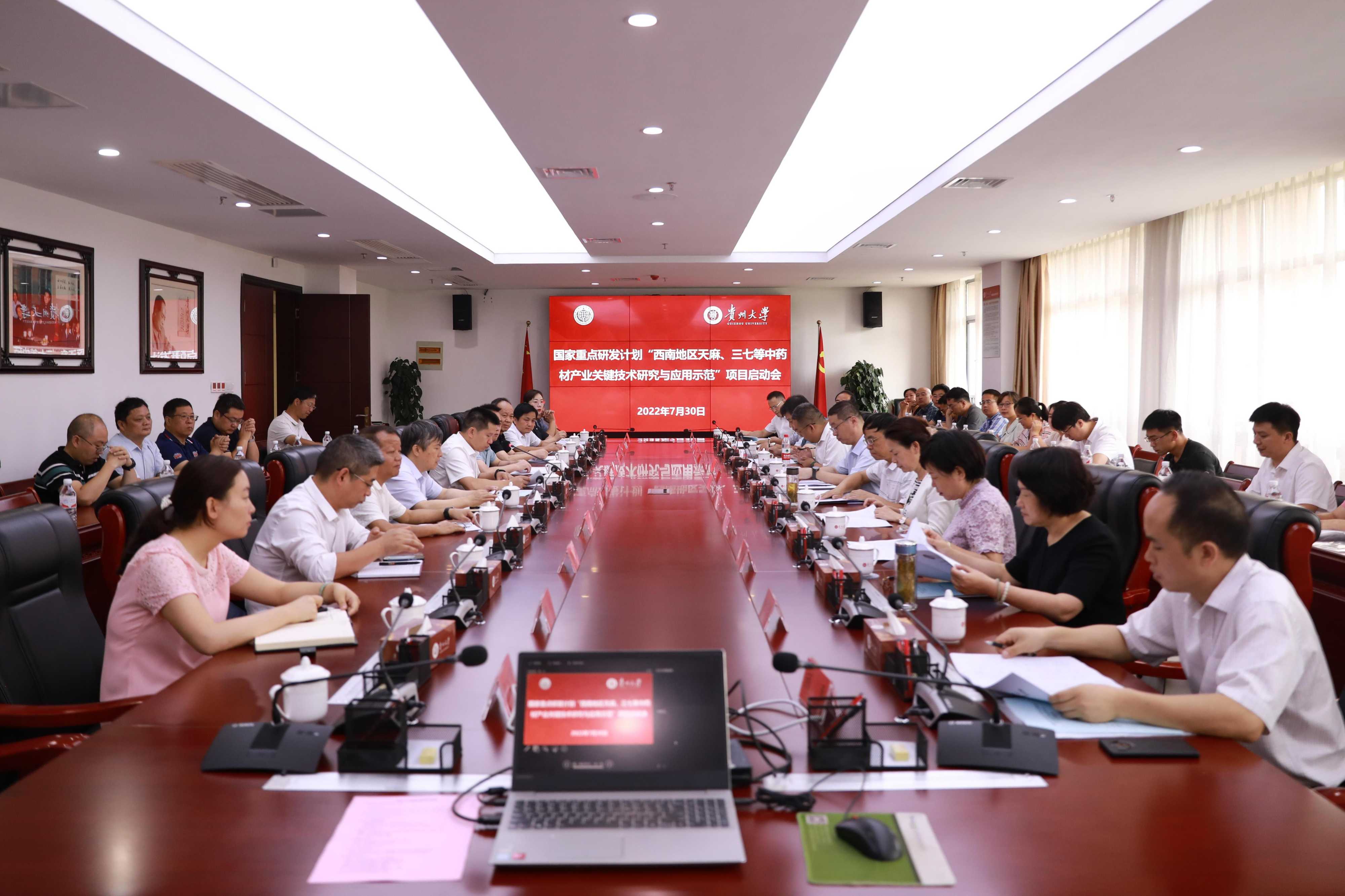 7月30日,国家重点研发计划“西南地区天麻、三七等中药材产业关键技术研究与应用示范”项目启动会在贵州大学召开。科技部农村技术开发中心、省科技厅、省农业农村厅、贵州大学等单位领导以及有关专家、项目参与单位负责人参加会议。