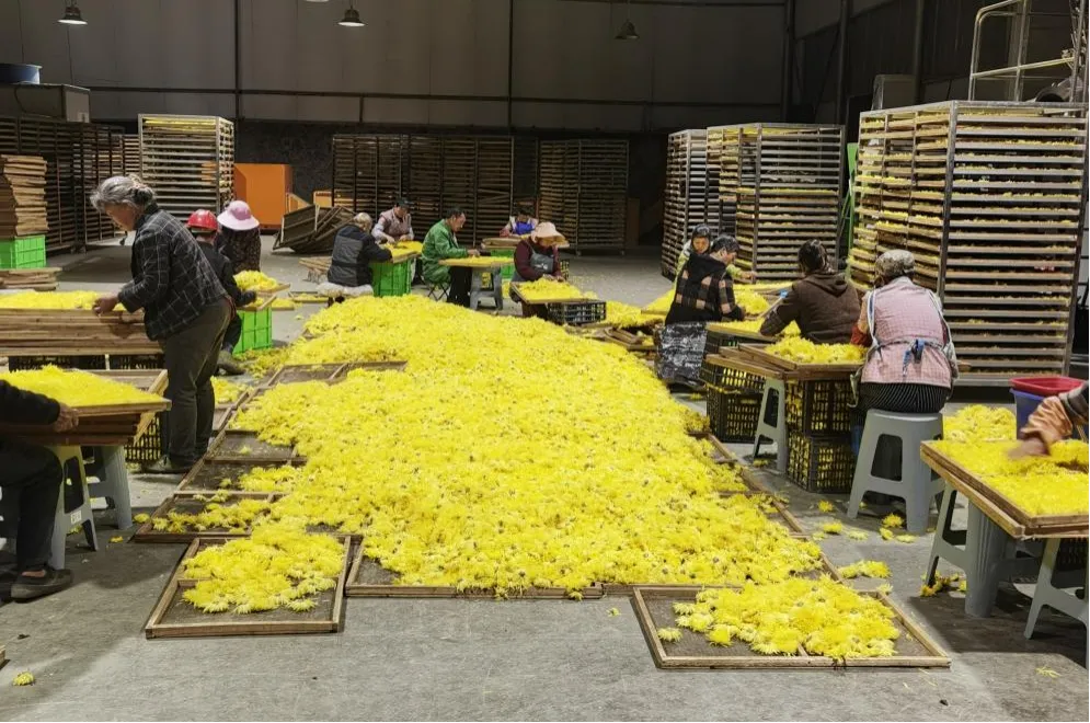 近年来,为确保搬迁群众搬得出、稳得住、有就业、能致富,永靖镇加大对团圆社区搬迁群众后续扶持力度,以创建菊花产业园为契机,探索推动农旅融合发展,促进搬迁群众持续稳定增收。“为延长菊花产业链,提升经济效益,团圆社区还种植了100亩食用菊和100亩中药材。主要包括北京菊、金丝黄菊和黄蜀葵,这些品种不仅具有观赏价值,还具有一定的食用、药用价值。”永靖镇相关部门工作人员杨凯介绍,目前,团圆社区菊花产业园通过加工并销售干菊花、黄蜀葵等,累计收入26万余元。