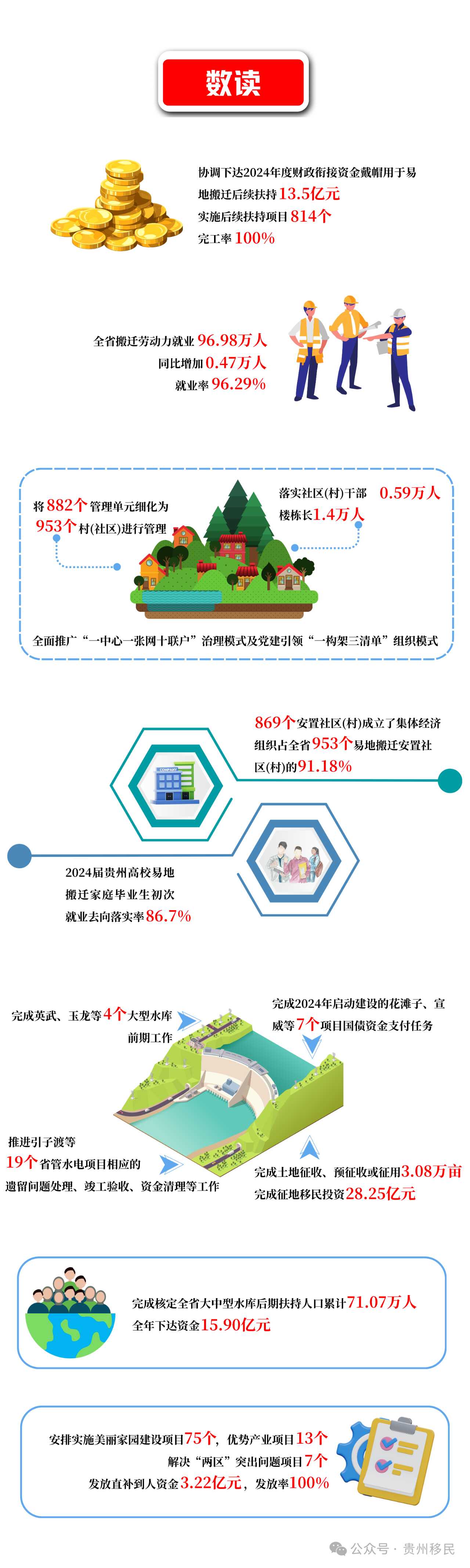 2024年,贵州以改革创新举措持续抓好全省生态移民各项工作落地落实,在就业增收、国债项目、社区治理、监测帮扶、水库移民、生态搬迁和地灾避险搬迁等方面取得了实实在在的成效,让搬迁群众的获得感、幸福感、安全感更加充实、更有保障、更可持续。