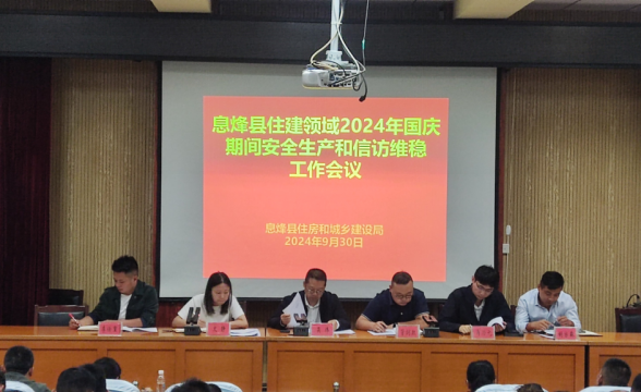 一是加强组织,精心部署落实。节前,1.党组书记、局长主持召开息烽县住建领域2024年国庆期间安全生产和信访维稳工作会议,传达学习国庆期间安全生产相关文件会议精神,对国庆