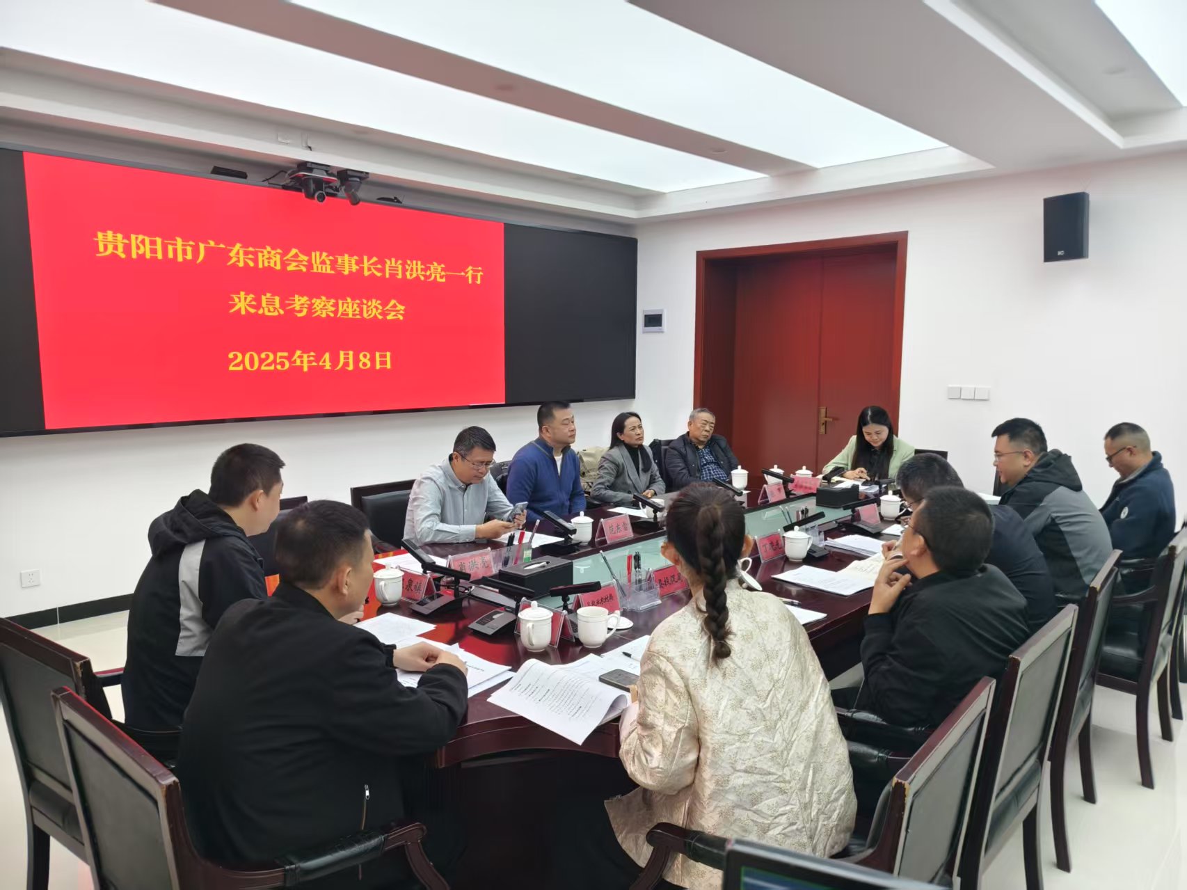 2025年4月8日,贵阳市广东商会监事长肖洪亮一行来息洽谈息烽温泉-旅居主题公园(赶子村)项目及西山肉牛供应养殖产业园项目的合作事宜。县人民政府副县长丁晓光,县发展和改革局、县自然资源局、县农业农村局、县文体广电旅游局、县投资促进局、市生态环境局息烽分局、西山镇、温泉镇有关负责人参加座谈。