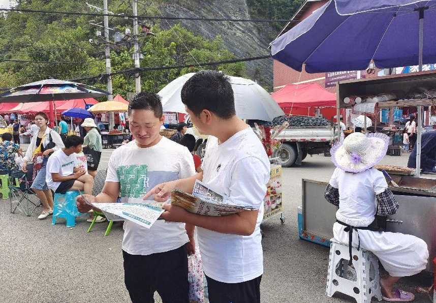 图为 工作人员利用乡镇赶集日开展养老诈骗宣传活动