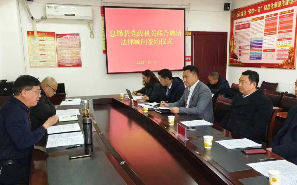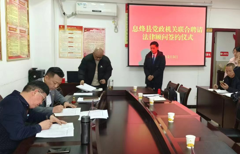为进一步加强党政机关依法决策、依法行政和依法办事的能力水平,2023年2月3日,息烽县司法局受县人民政府授权,分别与上海市协力(贵阳)律师事务所、北京德恒(贵阳)律师事务所签订了《法律顾问合同书》。