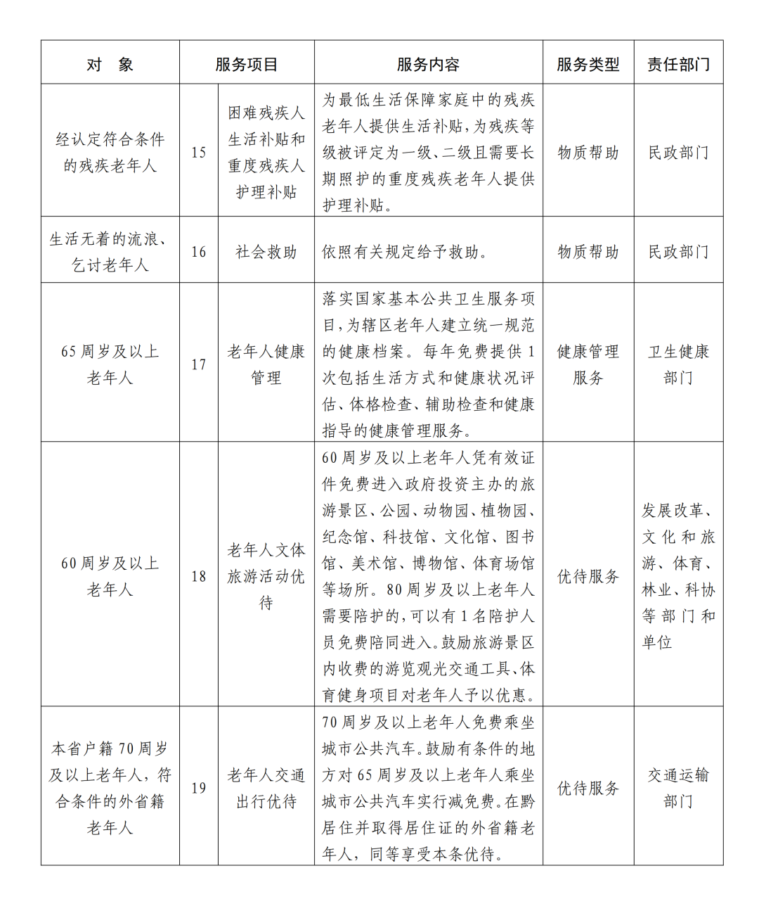 8.加强经济困难失能老年人和残疾老年人保障。市、县两级人民政府按规定为经认定生活不能自理的经济困难老年人提供护理补贴或照护服务,补贴标准根据老年人失能程度和经济困难程度综合确定。整合残疾老年人身份识别、待遇享受、服务递送、无障碍环境建设等各方面资源,提升残疾老年人服务保障水平。
